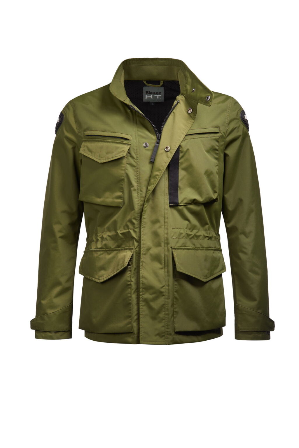 BLAUER ETHAN  Giacca realizzata in double-layer in nylon idrorepellente con taglio field jacket. Predisposta per protezioni al gomito e spalle (incluse), alla schiena (non incluse). Cerniera frontale con doppio cursore e bottone a pressione sul fondo. Colletto con bottone a pressione. Coulisse in vita. Polsino con ghetta interna e chiusura regolabile con bottone a pressione. 4 ampie tasche frontali. 2 prese d’aria frontali e 2 outlet sulla schiena tutte apribili tramite zip. Taschino interno invisibile e tasca portadocumenti interna.