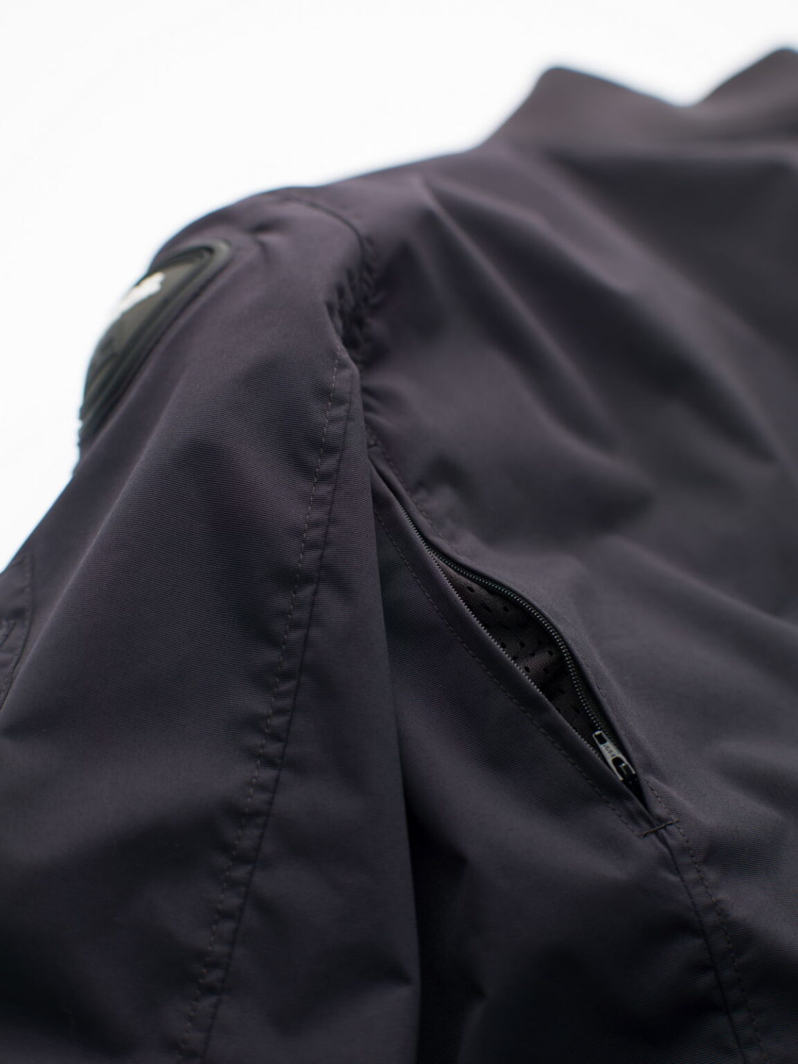 BLAUER MAVERICK è una Giacca realizzata con taglio bomber classico in double-layer in nylon idrorepellente . Predisposta per protezioni al gomito (incluse), alle spalle e alla schiena (non incluse). La tasca frontale con zip funge anche da presa d’aria con uscita sulle due aperture sul retro apribili tramite zip. • Composizione = 100% Nylon • Protezioni gomito = EN 1621-1 – liv.2 • Classe di certificazione: C | Regolamento (UE) 2016/425 • Taglie: S – 3XL