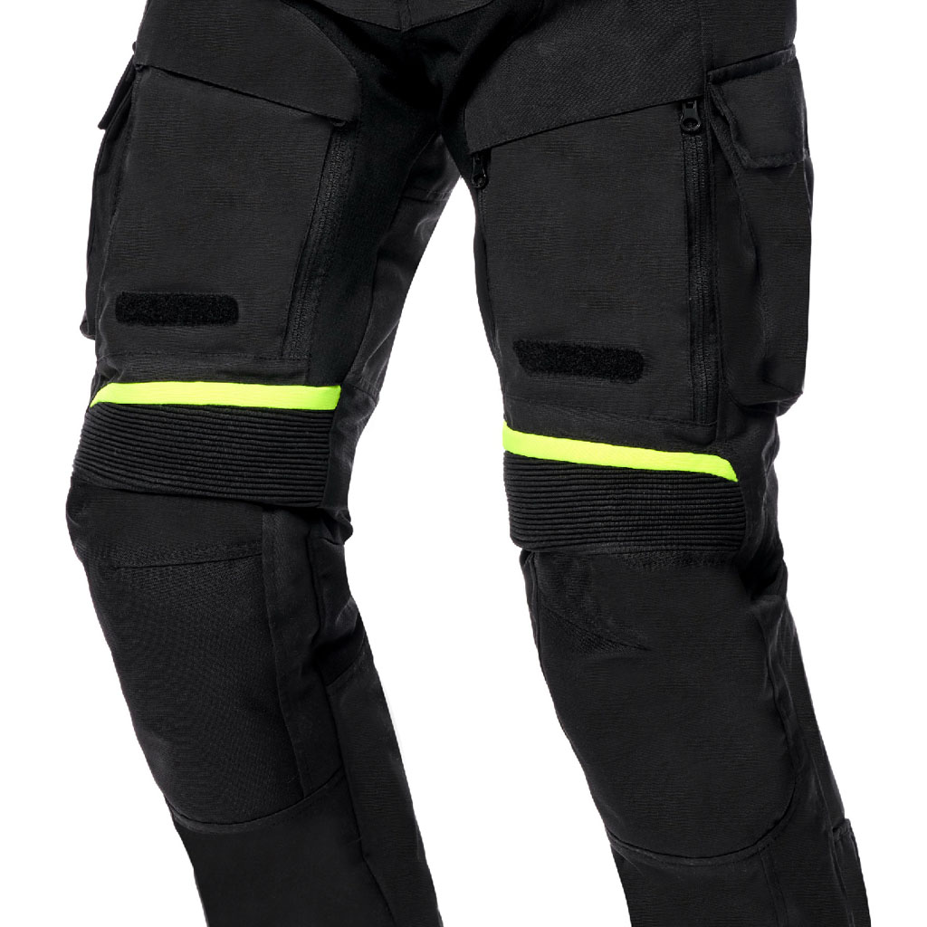 Il rinforzo nell’area del sedile e le protezioni per le ginocchia garantiscono la sicurezza del pilota. La ventilazione è fornita da prese d’aria sulle cosce. La fodera in rete di poliestere antistatica e antibatterica, il rivestimento idrorepellente e l’inserto elasticizzato in nylon nella zona del cavallo assicurano il massimo livello di comfort.