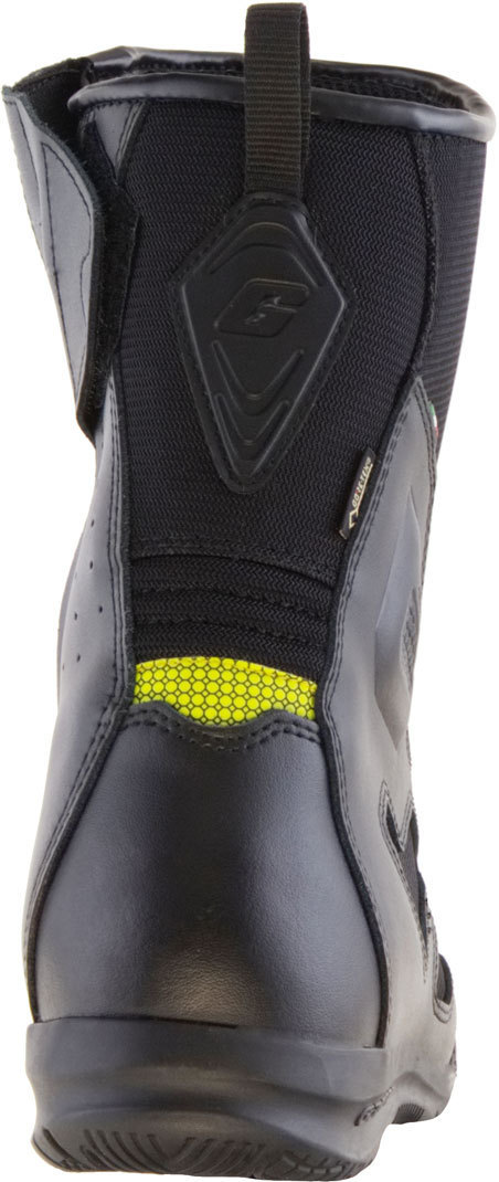 Gaerne Stivali Hybrid Gore Tex – Nero: stivaletto con tomaia in pelle e cordura con elastico anteriore e posteriore, sistema di doppia chiusura con zip e velcro cinturino. All’interno membrana gore-tex rendono lo stivale impermeabile e traspirante. Protezioni in plastica alla caviglia. Riflesso giallo fluo dettagli per una migliore visibilità ‘ anche in condizioni di scarsa illuminazione. Suola in gomma con un design specifico per una buona presa sulla moto e su diverse superfici.
