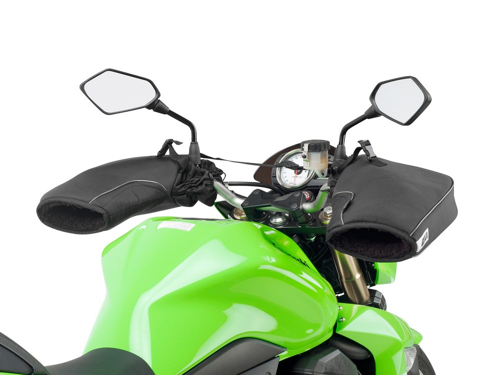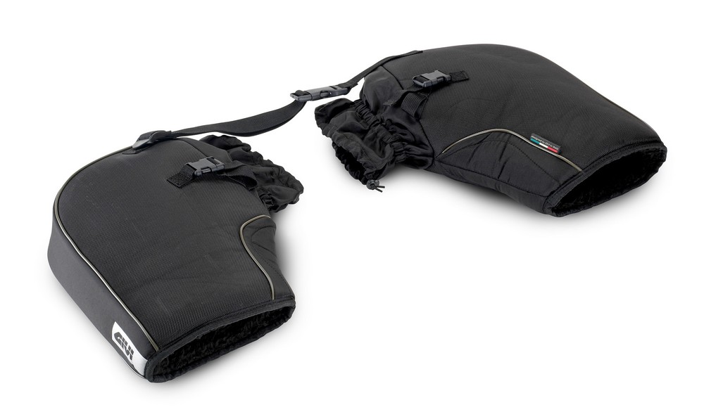 Paramani universali GIVI TM418 in poliestere antipioggia con fodera termica interna, struttura semirigida per facilitare l’inserimento delle mani.