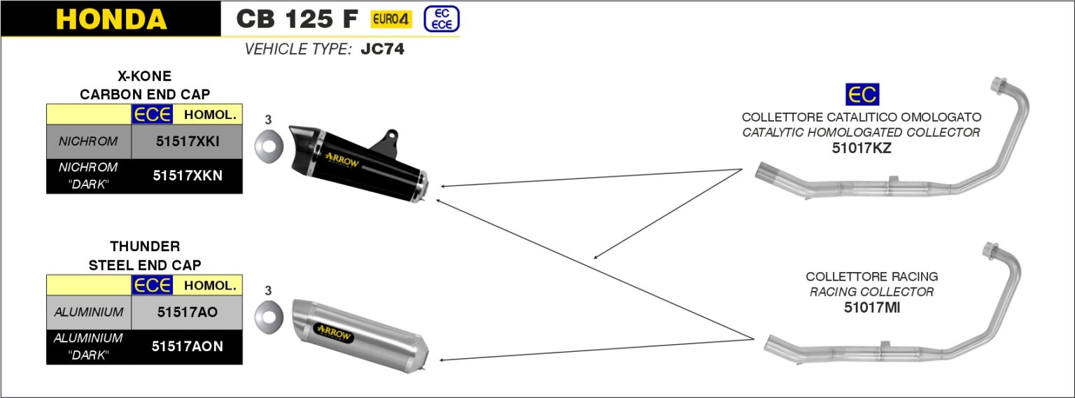 Raccordo catalitico Omologato in Acciaio inox Arrow 51017KZ – Honda CB 125 F dal 2017 al 2020
