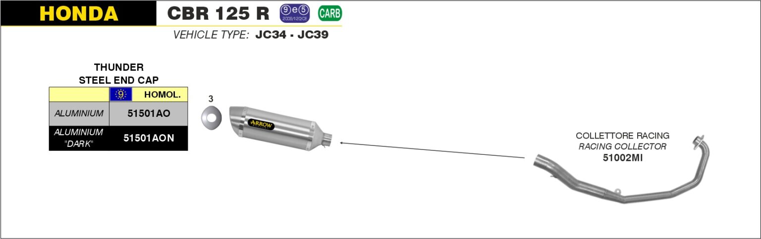 Per il corretto montaggio รจ NECESSARIO acquistare il Raccordo Racing NON catalitico in Acciaio inox Arrow 51002MI
