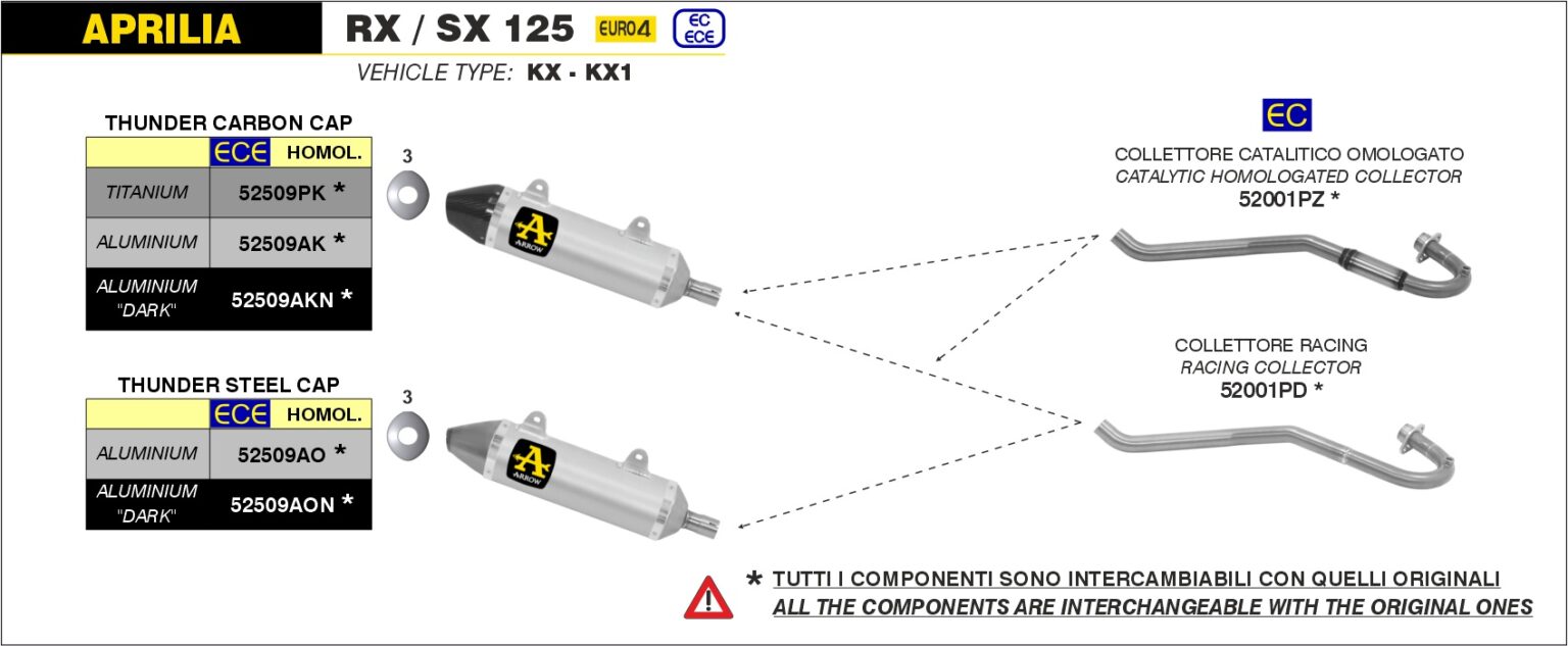 Terminale di scarico Thunder in Titanio Arrow 52509PK – Aprilia Rx / Sx 125.