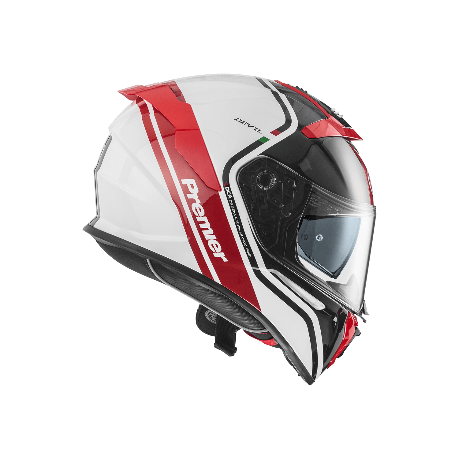 Devil racchiude la summa del lavoro del reparto Ricerca e Sviluppo, che definisce un nuovo di lavoro sportivo trasversale: un casco integrale per uso turistico. la perfetta combinazione fra la vocazione per le lunghe distanze ed un innato spirito racing, che riesce a coniugare confortevolezza e design aerodinamico e sodisfare cosi anche le necessitร piรน esigenti.