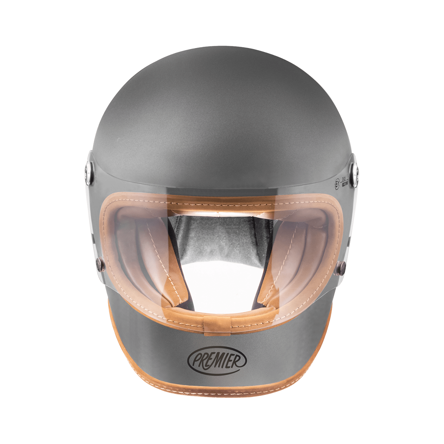 Premier TROPHY Platinum ED è da sempre stata presente nel mondo motociclistico fin dagli anni ’60, scrivendo una delle pagine più ricche e intense delle competizioni sulle due ruote. TROPHY vuole rendere omaggio proprio a quel periodo leggendario e indimenticabile, confermandosi anche quest’anno come uno dei modelli più apprezzati di tutta la linea vintage. Premier TROPHY Platinum ED Riesce infatti a coniugare alla perfezione una linea sobria e pulita con la più moderna tecnologia rendendolo un casco estremamente fedele al vecchio stile ma confortevole e sicuro sotto ogni aspetto. Anche la visiera, anche se identica a quelle utilizzate dai campioni del passato, è omologata e dotata di trattamento antigraffio. È fissata alla calotta da un meccanismo che ne regola l’apertura e da due bottoni nella parte inferiore che ne assicurano la chiusura. La visiera è disponibile come accessorio nelle varianti Dark, Orange, Red, Gold e Silver. Gli interni richiamano anch’essi il sapore retrò degli esterni, e sono costituiti da tessuti resi anallergici dal trattamento Sanitized e traspiranti. Le rifiniture sono in pelle sintetica, facilmente lavabili con un panno morbido. La chiusura è costituita da un cinturino con doppio anello, come si usava in passato e come si usa ancora oggi nel settore racing. Il risultato è un materiale leggero ed elastico, ma altamente resistente in caso di urto che rende TROPHY un casco robusto ma confortevole. Premier Platinum ED è disponibile nelle taglie XS/XL