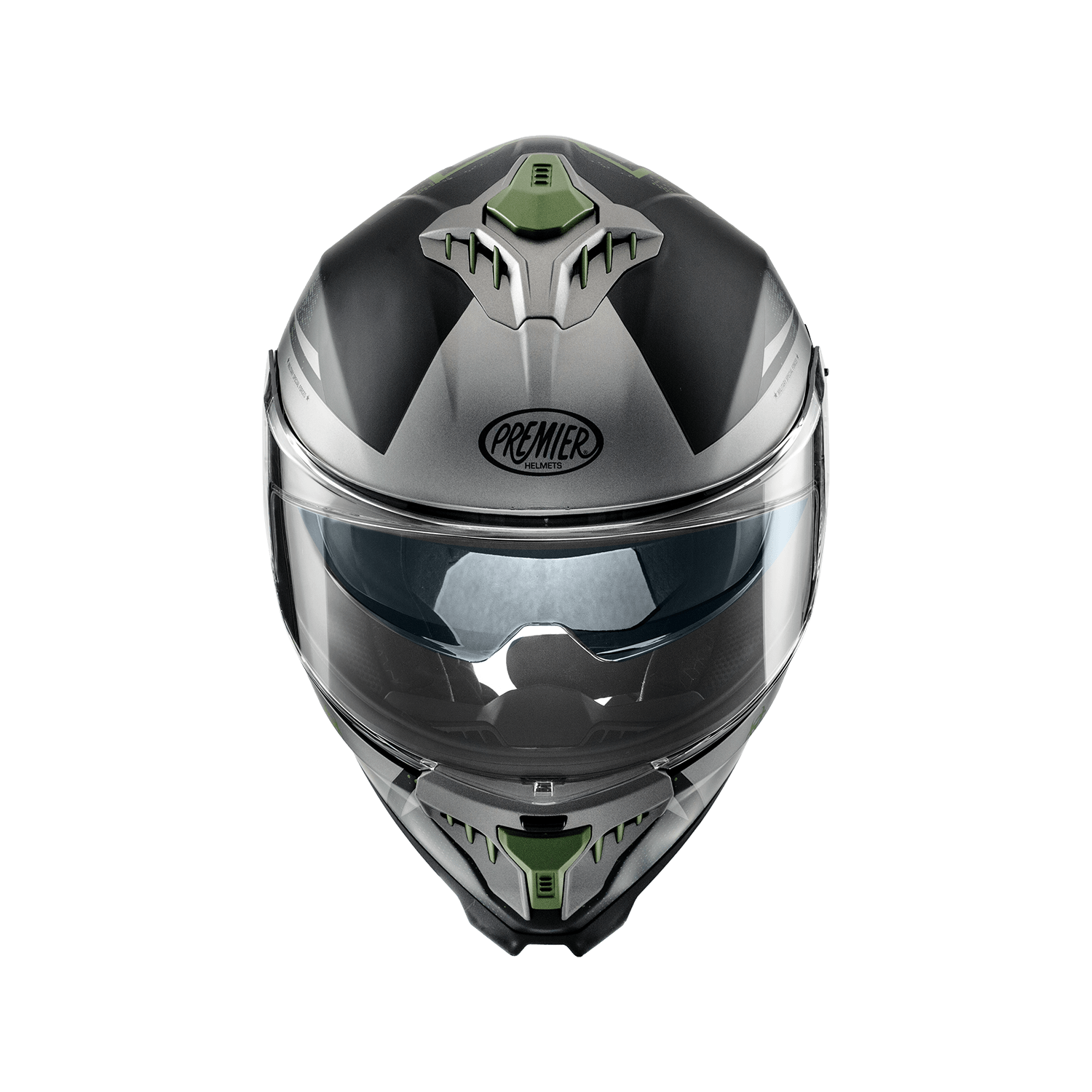 Premier Typhoon BA MILY BM- Nero e grigio รจ un casco integrale per uso turistico, calotta in fibra composita e visierino parasole a scomparsa.