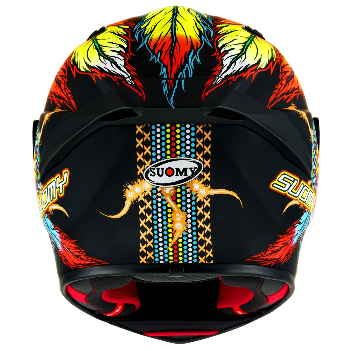 Il polistirolo interno di protezione è stato studiato per lavorare in simbiosi con le 3 prese d’aria poste sulla calotta. Le particolari scanalature, ricavate sul polistirolo, permettono al flusso d’aria in ingresso una ventilazione ottimale all’interno del casco e, nello stesso tempo, uno scarico veloce dei flussi d’aria calda in uscita garantita dagli esclusivi estrattori d’aria posti nello spoiler posteriore.