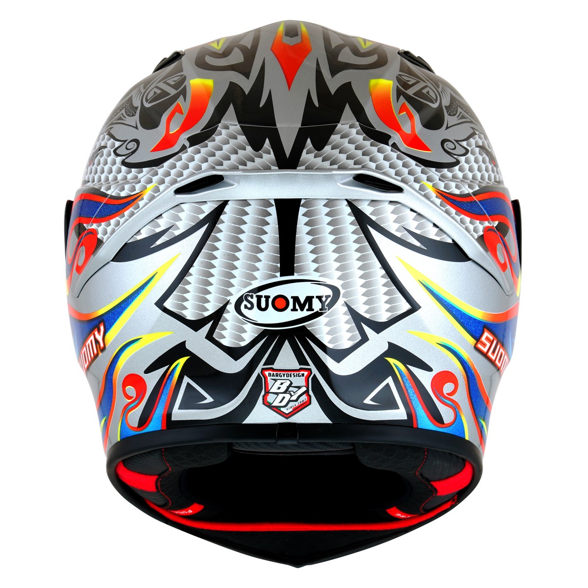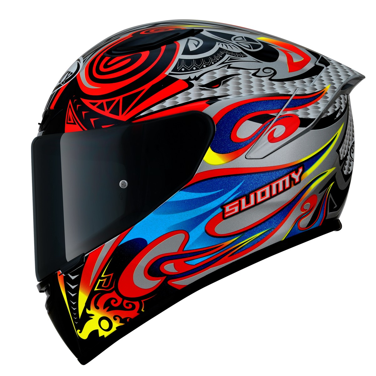 TRACK-1 Flying è il nuovissimo integrale SUOMY di ultima generazione composto in TRICARBOCO (carbonio-fibre aramidiche-fibre di vetro) dalle forme dinamiche e performanti, sviluppato e ottimizzato in galleria del vento al fine di ottenere le migliori prestazioni e il miglior comfort per l’uso in pista e in strada.