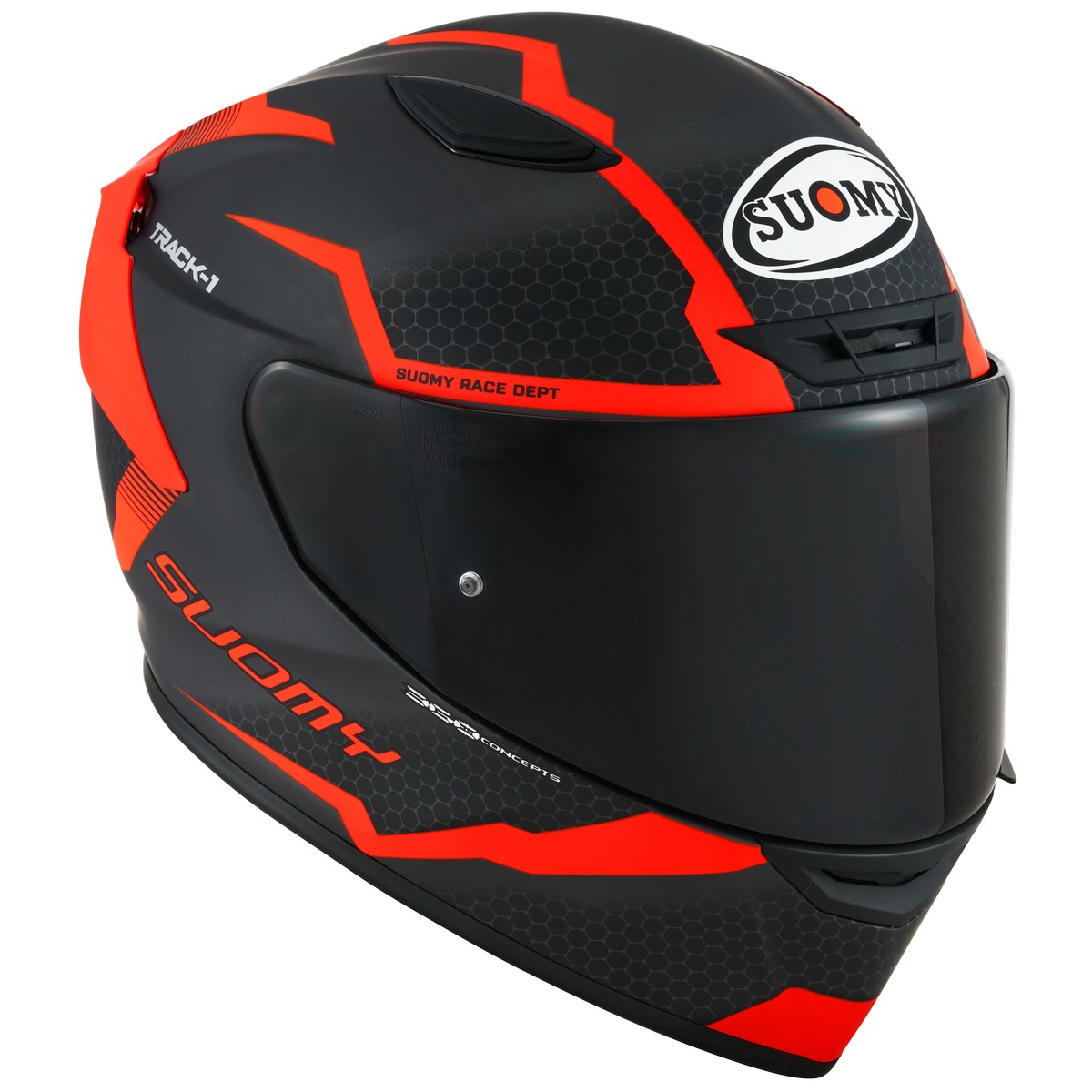 TRACK-1 Reaction Antracite Opaco Rosso è il nuovissimo integrale SUOMY di ultima generazione composto in TRICARBOCO (carbonio-fibre aramidiche-fibre di vetro) sviluppato allo scopo di ottenere miglior comfort per l’uso in pista e in strada.
