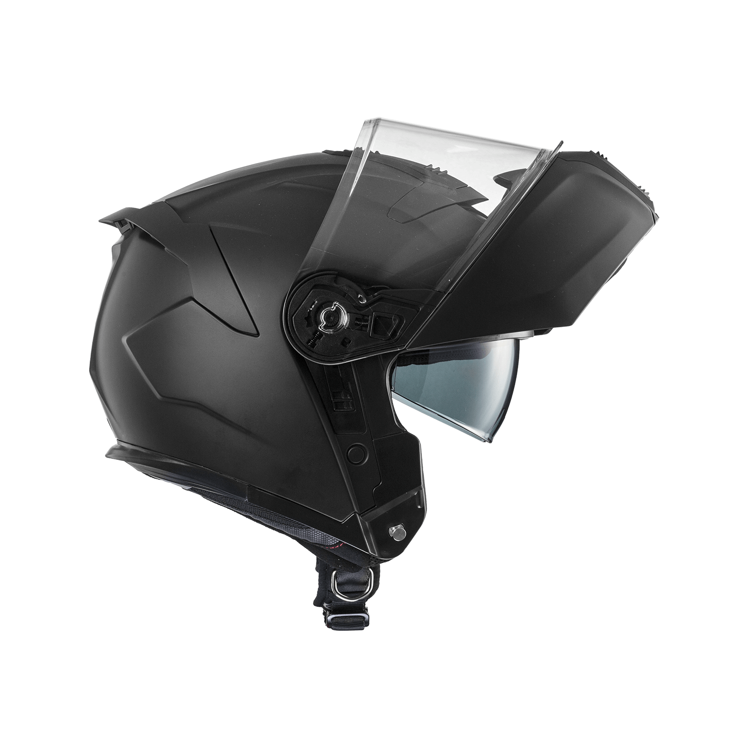 Questo modello 2-in-1 in fibra di carbonio integra il meglio di entrambi i caschi, come la visiera Extra Wide per una migliore sicurezza attiva, la visiera parasole a scomparsa, Pinlock ®, Stop Wind e predisposizione per il montaggio dei sistemi Bluetooth.