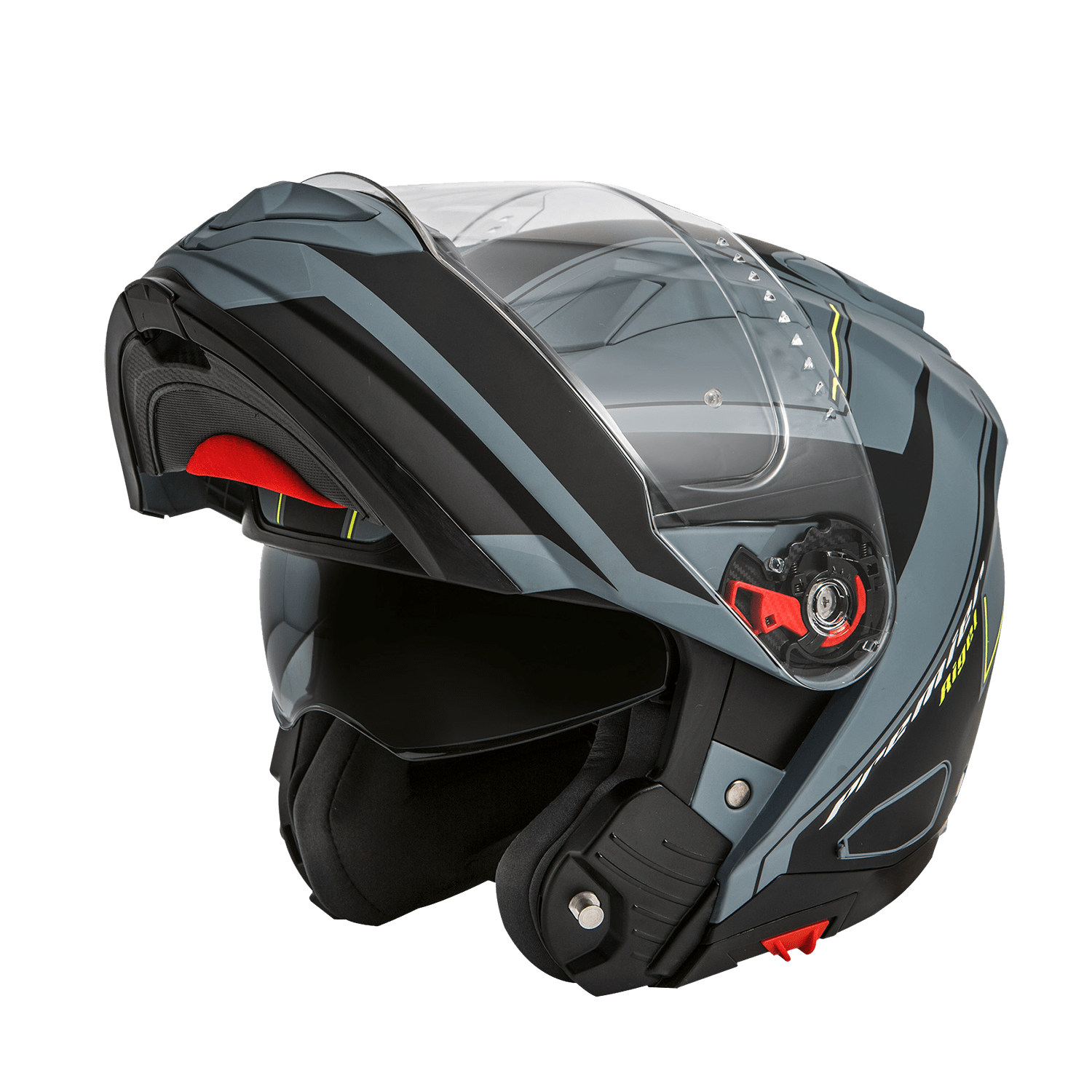 Questo modello 2-in-1 in policarbonato integra il meglio di entrambi i caschi, come la visiera Extra Wide per una migliore sicurezza attiva, la visiera parasole a scomparsa, Pinlock ®, Stop Wind e predisposizione per il montaggio dei sistemi Bluetooth.