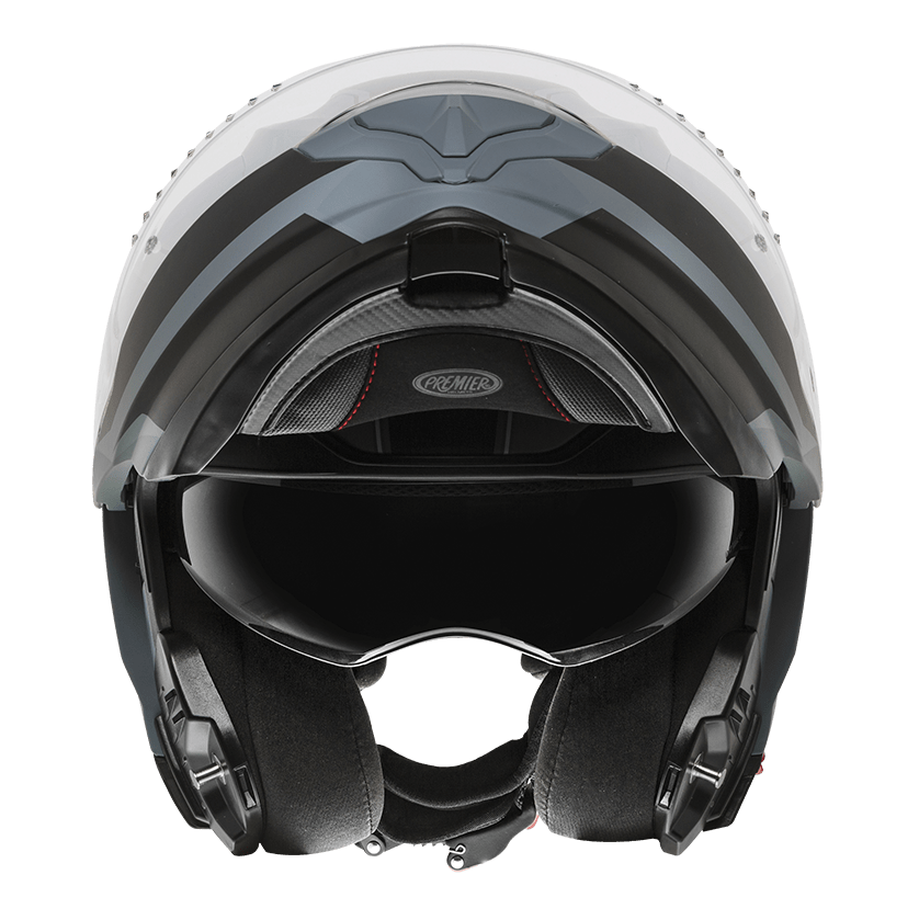 Delta Evo è il casco apribile in policarbonato top di gamma della Premier Helmets ® che combina la versione integrale e la versione jet in un unico modello dinamico e moderno, capace di adattarsi ad ogni condizione di guida e ad ogni esigenza di sicurezza e di comfort.