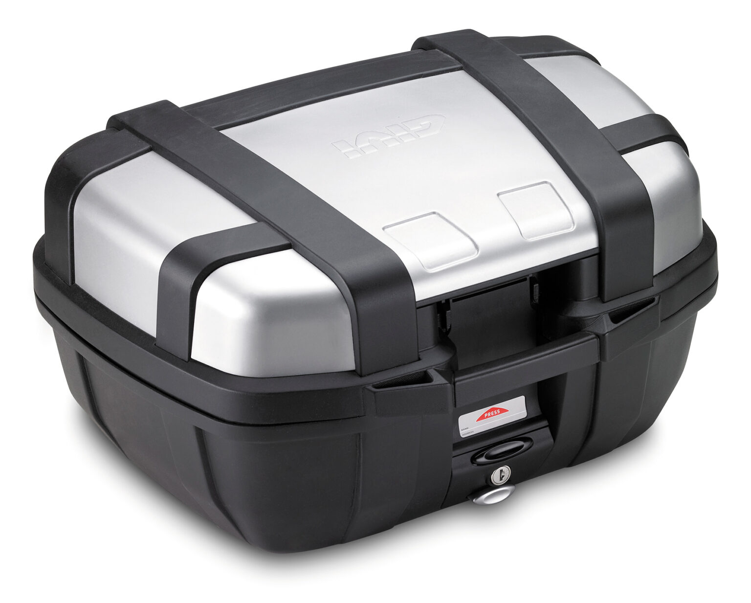 Capiente baule con sistema di fissaggio MONOKEY® che completa al gamma TREKKER. Consente l’alloggiamento di due caschi modulari. Realizzata in tecnopolimeri rinforzati con fibre di vetro garantisce notevole rigidezza strutturale.