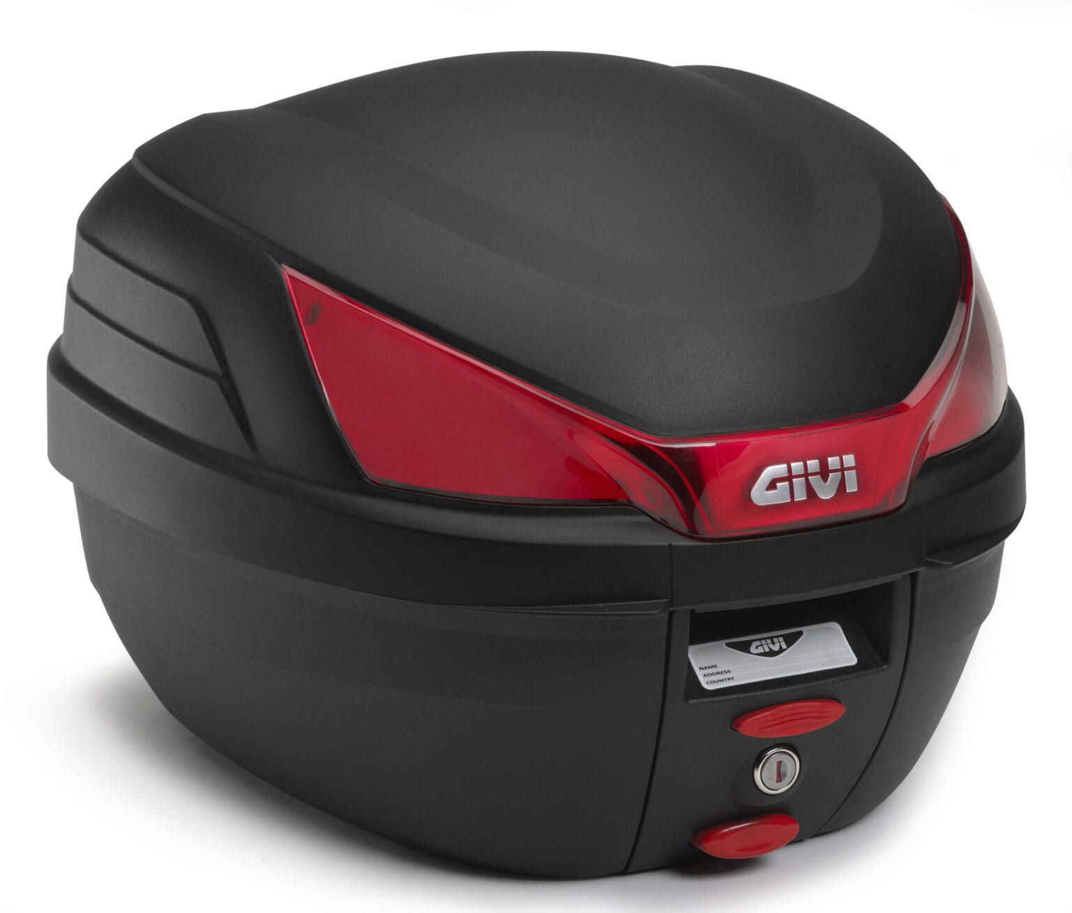 Bauletto Givi Monolock B29 da 29 lt nero goffrato con catadiottri rossi.