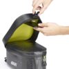 Borsa serbatoio waterproof nera, 10 litri, con interno di colore giallo.
