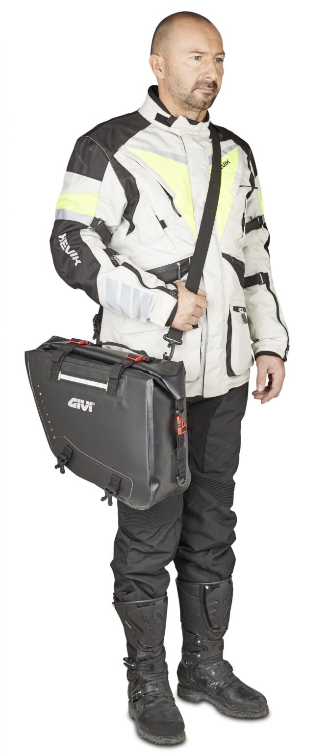 • Sistema di chiusura a rigiro per garantire l’impermeabilità della borsa • Cinghie per il fissaggio al telaio della moto • Aggancio alla sella della moto tramite cinghie con chiusura a strappo • Stampe ed inserti riflettenti per una maggiore visibilità • Interni rinforzati per conferire maggior sostegno alla struttura della borsa • Cinghie con agganci rapidi nella parte superiore ed inferiore della borsa per il fissaggio del borsello GRT717 o di altri carichi compatibili