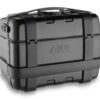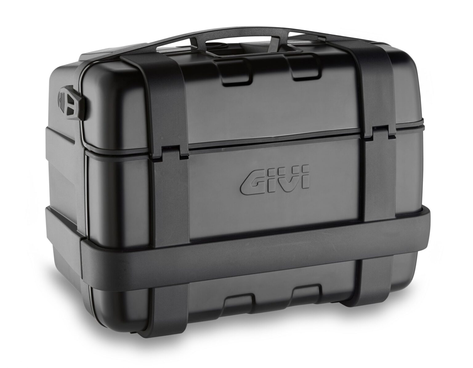 Kit comprendente due valigie con sistema di fissaggio MONOKEY® TREKKER TRK46B da 46 lt con chiave uguale. Realizzate in tecnopolimeri rinforzati con fibre di vetro garantiscono notevole rigidezza strutturale sono inoltre dotate di sportello di apertura superiore. La cover è realizzata in alluminio verniciato nero per resistere agli agenti atmosferici. Ogni valigia può contenere un casco integrale o modulare.