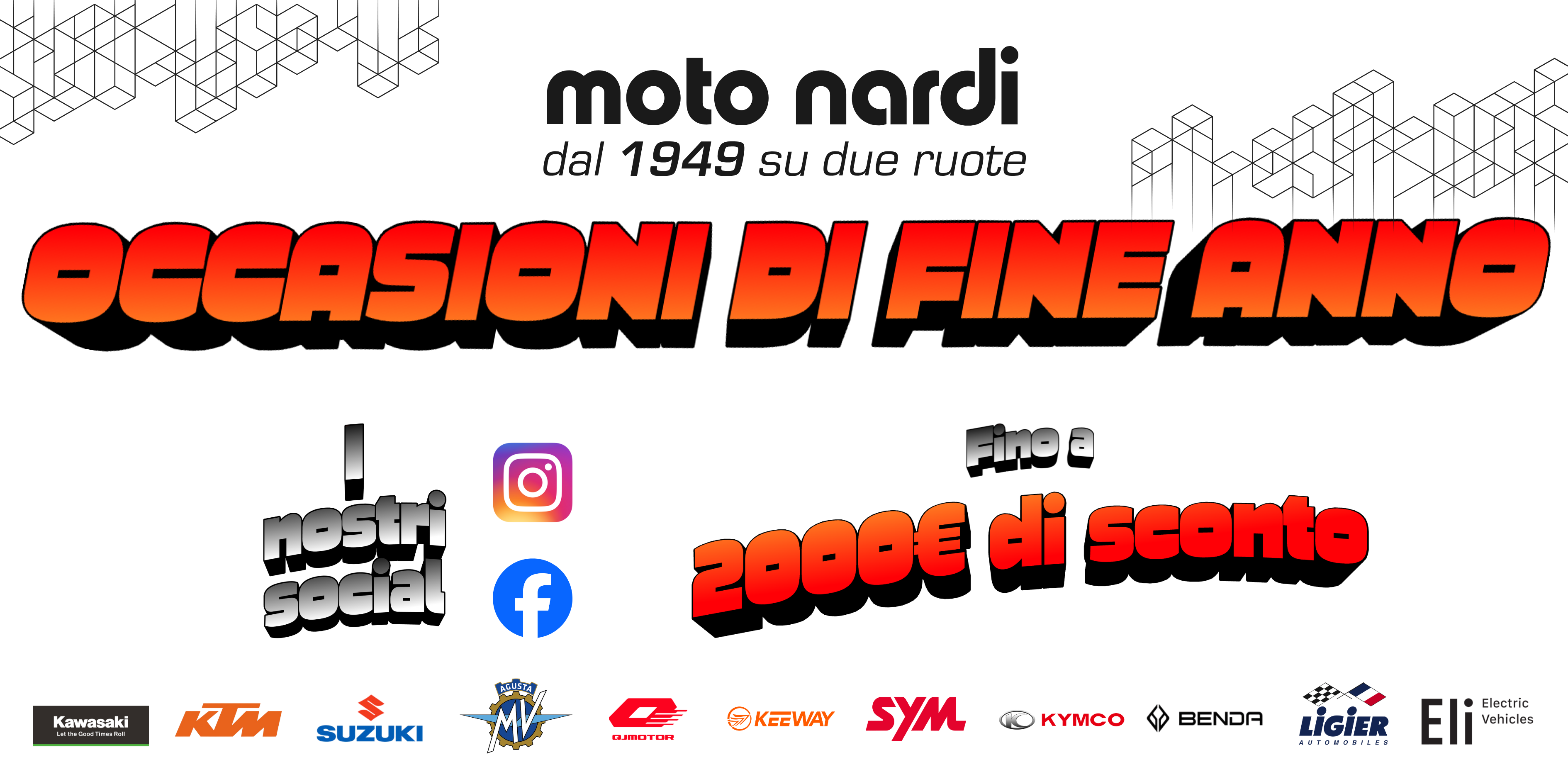 Chiudiamo il 2025 con le migliori offerte dell’anno: da Moto Nardi trovi una selezione di moto, scooter e minicar con sconti eccezionali fino a 2.000€.
